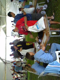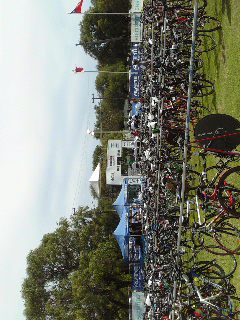 巨大なテントの中に設置された会場に、数100人のトライアスリートとボランティアが賑やかに集う。