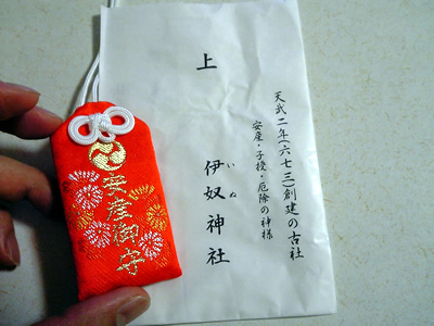 そのお守りを返し、今度は安産のお守りを頂く。